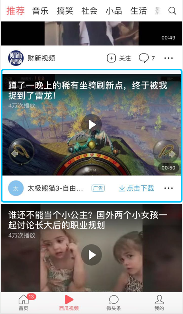 4G高速上网环境,加上短视频的兴起,信息流视频广告今年迎来爆发年,典型代表就是今日头条,目前在头条上的游戏推广,大多都是通过视频形式。